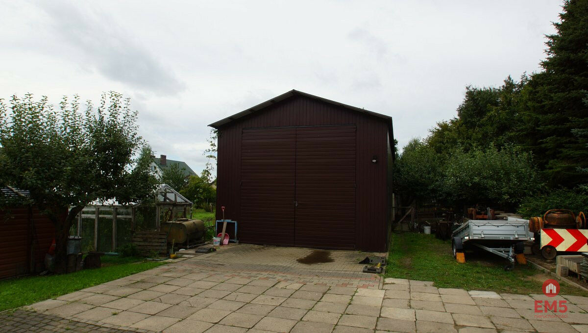 Na działce znajduje się oczko wodne, studnia, podziemny zbiornik na wodę deszczową, ogród warzywny, szklarnia, sad, wybieg dla kur, garaż 6m x 12m oraz dom. W skład domu wchodzą meble, sprzęt AGD, system alarmowy na czujniki ruchu, piec węglowy oraz piec gazowy 2-obiegowy. Brama wjazdowa oraz drzwi garażowe na pilot. Najbliższy przystanek autobusowy znajduje się 750 metrów od domu.